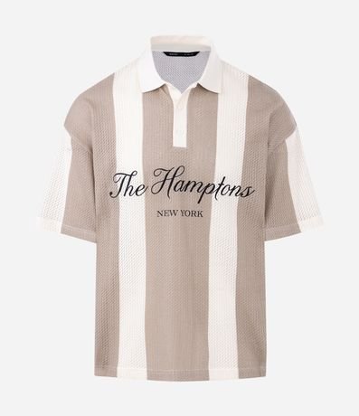 Camiseta Polo Oversized em Tricô Listrada com Bordado The Hamptons