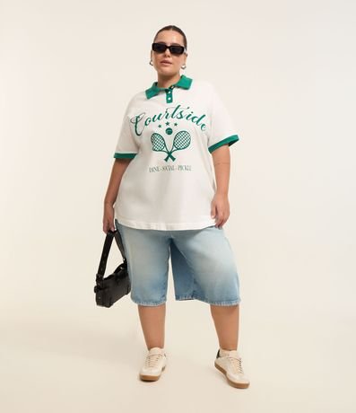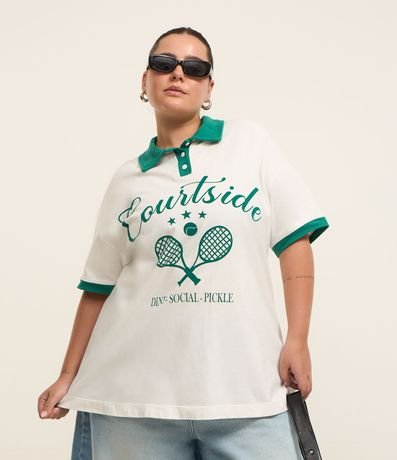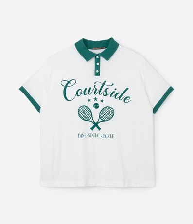 Ref: Camiseta polo confeccionada em piquet de algodão mais sustentável. A blusa tem gola polo contrastante, botões no peitilho, mangas curtas com barra contrastante e estampa de raquetes "Courtside".
