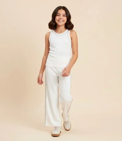 Ref: Camiseta infantil confeccionada em ribana mais sustentável, no modelo regata. Possui gola redonda, cava americana, sem estampa e com aplicação de brilhos.
