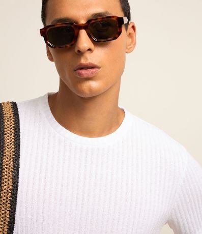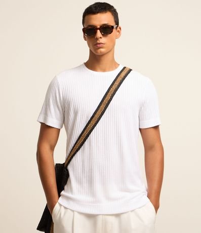 Camiseta Regular com Textura Canelada e Barra Larga