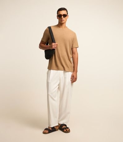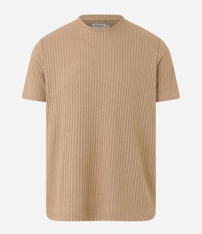Ref: Camiseta regular de mangas curtas confeccionada em tecido canelado com gola redonda e sem estampa.