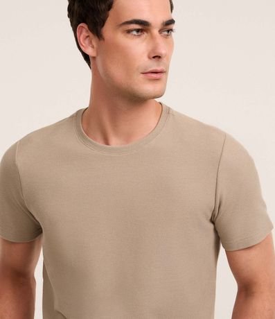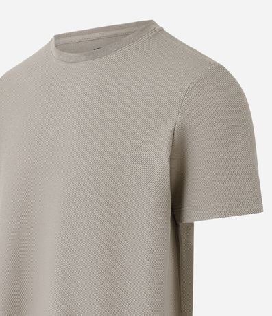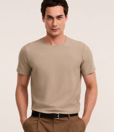 Ref: Camiseta masculina confeccionada com material mais sustentável, modelo regular, gola redonda e manga curta.