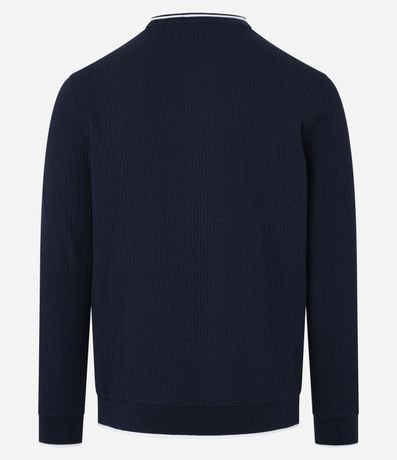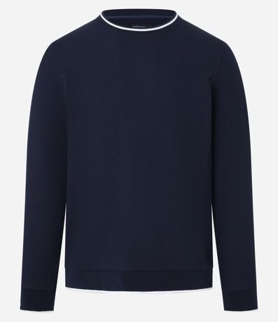 Ref: Camiseta masculina confeccionada em material mais sustentável, no modelo regular com gola redonda, detalhe de listra contrastante, manga longa e textura.