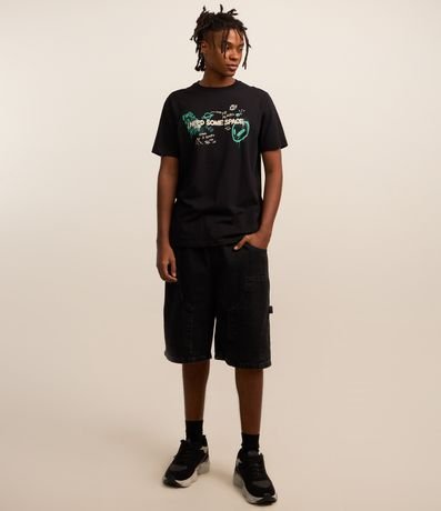 Camiseta Regular em Algodão com Estampa de Aliens e Lettering