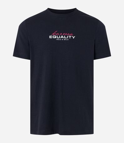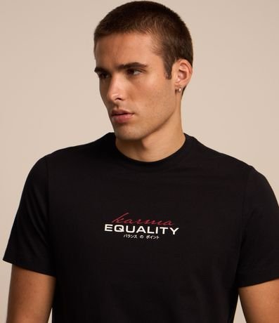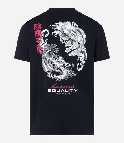 Ref: Camiseta masculina, em algodão, gola redonda, manga curta. Peça contém estampa centralizada com a palavra equality, nas costas duas carpas.