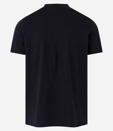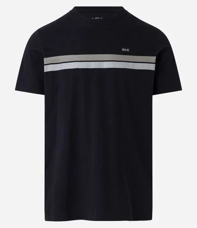 Ref: Camiseta regular masculina, confeccionada algodão, com gola redonda, mangas curtas, estampa de listras contrastantes e etiqueta frontal aplicada.