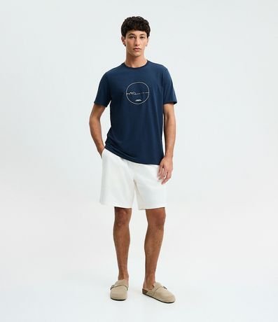 Ref: Camiseta regular em algodão com estampa geométrica de montanha no centro do peito. Possui gola redonda, mangas curtas e toque macio, ideal para compor looks casuais do dia a dia. Peça confortável e versátil, confeccionado em algodão de certificado BCI.