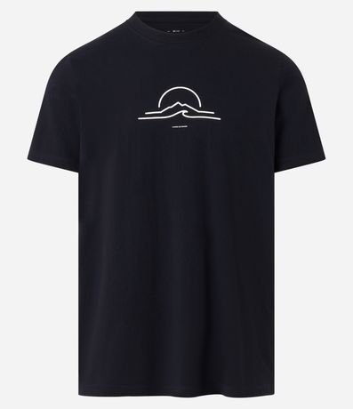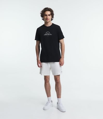 Ref: Camiseta regular em meia malha, confeccionada em tecido meia malha, com gola redonda, mangas curtas e, estampa de sol e mar minimalista em alto-relevo.