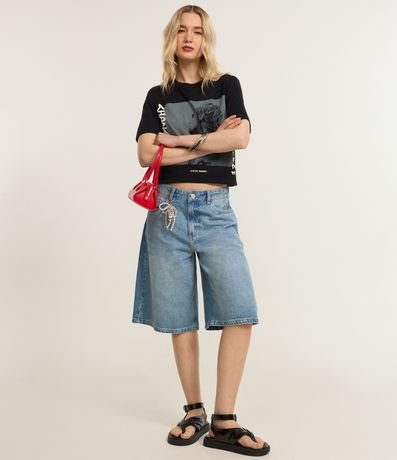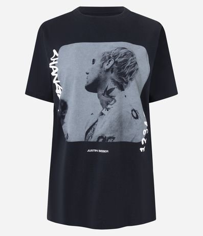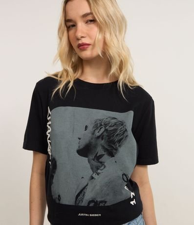 Ref: Camiseta feminina confeccionada em algodão mais sustentável. Possui gola redonda, manga curta e estampa Justin Bieber.