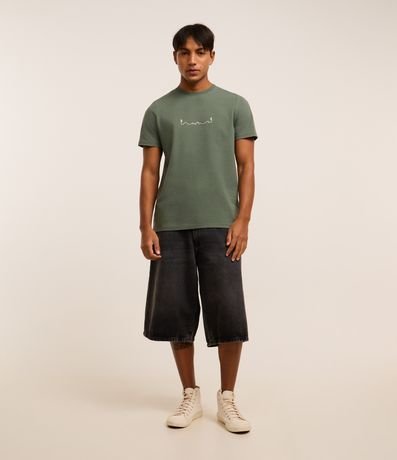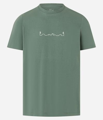 Ref: Camiseta masculina confeccionada em algodão mais sustentável com boas práticas ambientais, no modelo regular, possui gola redonda, manga curta e estampa de localizada.