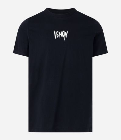 Ref: Camiseta masculina, modelo regular, confeccionada em algodão mais sustentável, gola redonda, manga curta. Peça com estampa localizada frontal e nas costas imagem do personagem Venom com cortes contrastantes.