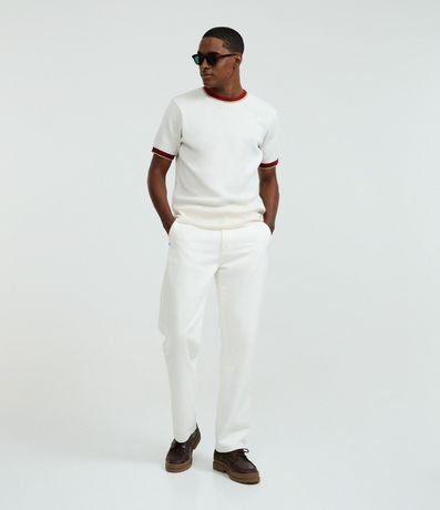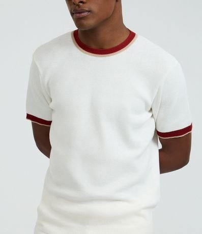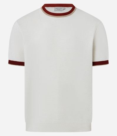 Ref: Camiseta regular em algodão BCI com listras contrastantes. Gola redonda, conforto clássico e moda sustentável para compor looks versáteis com estilo e consciência.
