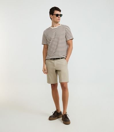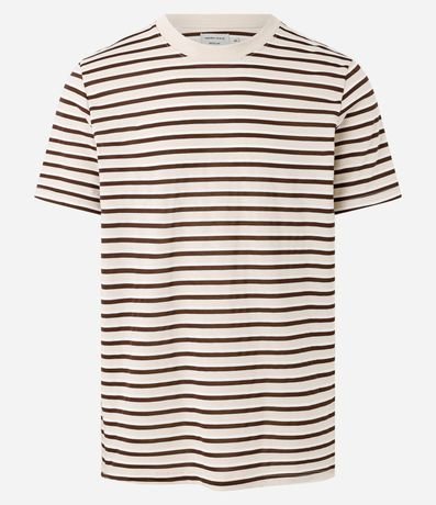 Ref: Camiseta masculina regular confeccionado em algodão certificado Bci com boas práticas ambientais, com listras fio tinto, gola redonda e manga curta. Visual clássico, toque macio e processo com boas práticas ambientais.