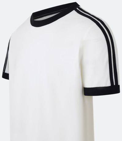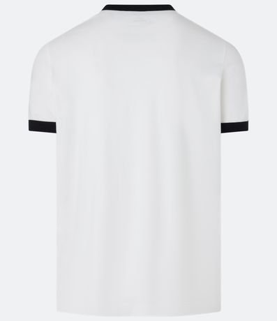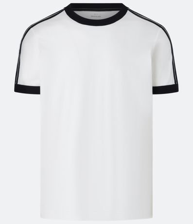 Ref: Camiseta masculina de modelo regular, com mangas curtas e confeccionada em malha de algodão mais responsável. Como detalhe possui listras no ombro, gola e barra da manga contrastante.