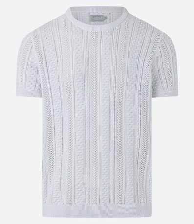 Ref: Camiseta masculina confeccionada em algodão certificado bci, peça com gola redonda, manga curta e textura com efeito de tricô em linhas verticais.