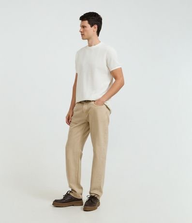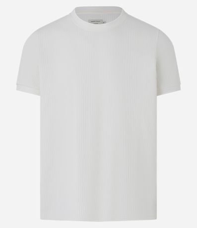 Ref: Camiseta masculina confeccionada em material mais sustentável, gola redonda, manga curta. Peça no modelo regular com textura vertical.