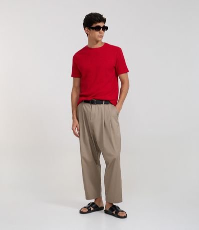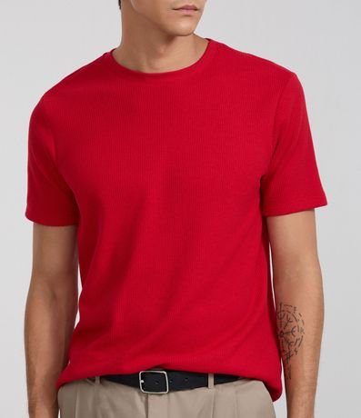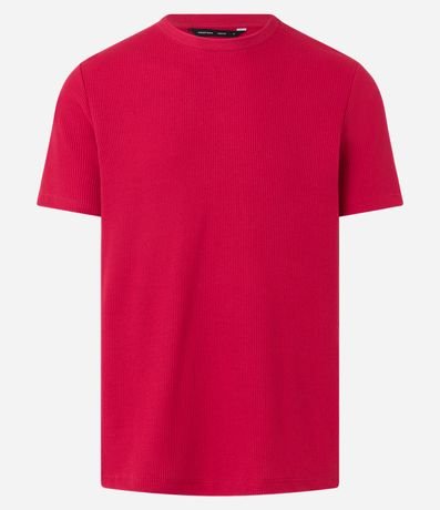 Ref: Camiseta masculina confeccionada em algodão mais sustentável, no modelo regular. Possui gola redonda, manga curta, sem estampa e com textura waffle.