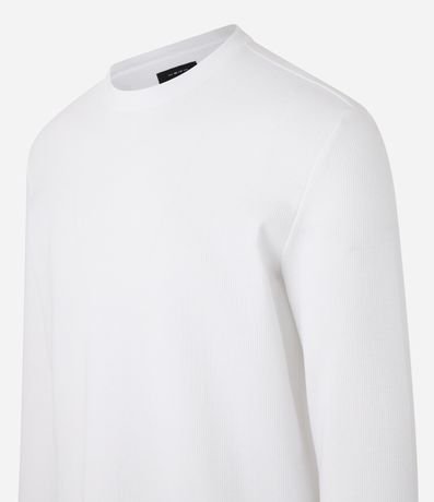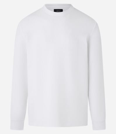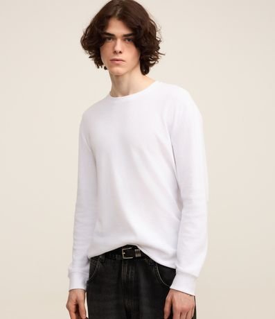 Ref: Camiseta masculina regular confeccionada em algodão mais sustentável, gola redonda, manga longa e textura.