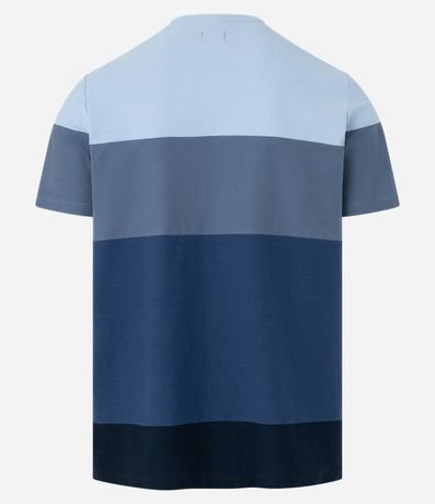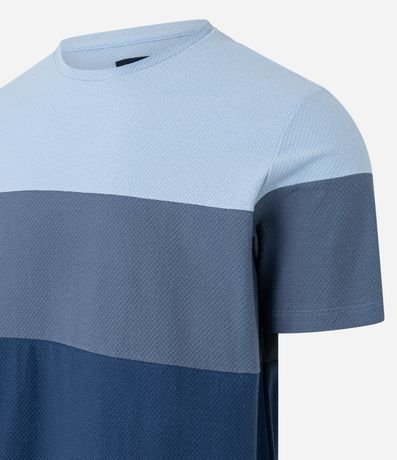 Ref: Camiseta masculina confeccionada em algodão mais sustentável, gola redonda, manga curta. Peça no modelo regular em bloco de cores com textura.