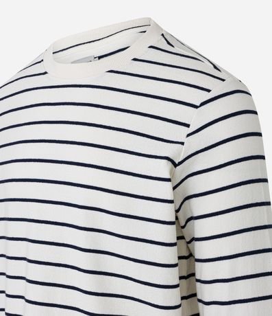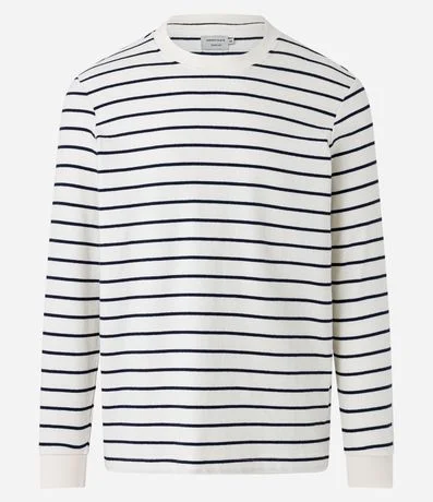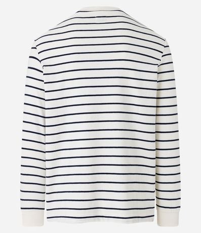 Ref: Camiseta regular em algodão, com gola redonda, manga longa, malha texturizada e com estampa listrada.