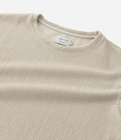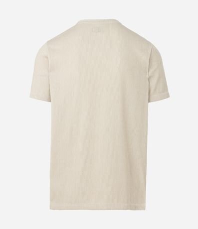Camiseta masculina em meia malha, com gola redonda, manga curta e com texturas verticais em toda a peça.