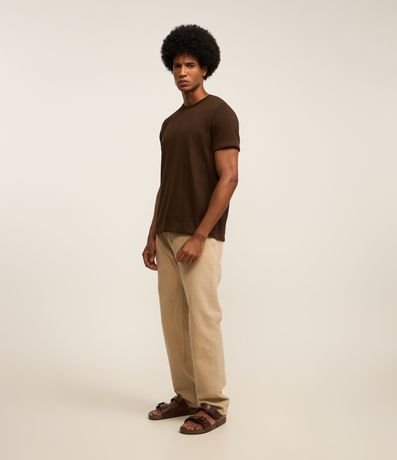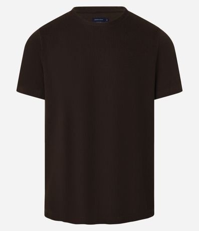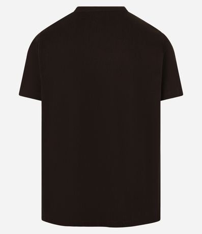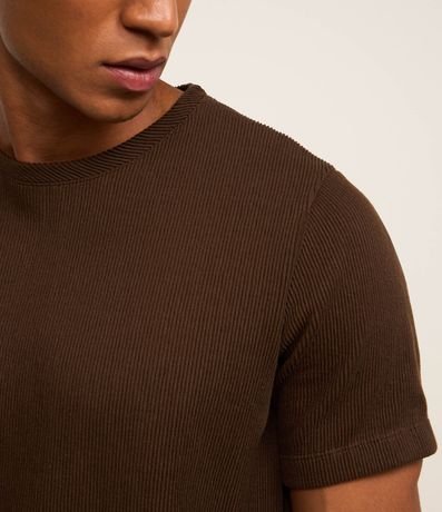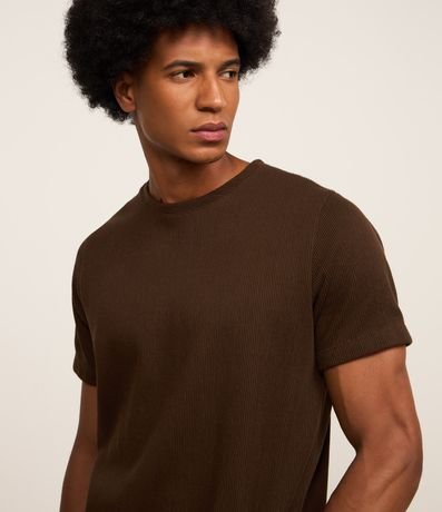 Camiseta masculina em meia malha, com gola redonda, manga curta e com texturas verticais em toda a peça.