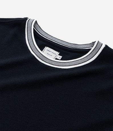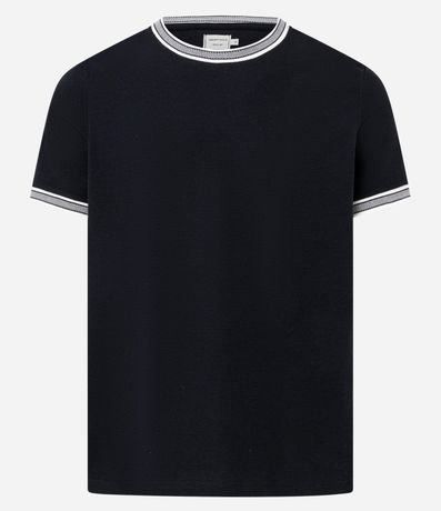 Ref: Camiseta regular em algodão texturizado BCI. Gola redonda, listras contrastantes e toque sustentável. Visual clássico com conforto, estilo e consciência ambiental.