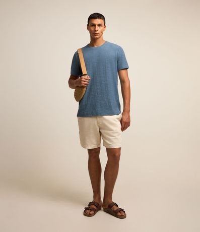 Camiseta regular masculina,  com gola redonda, mangas curtas e textura diferenciada.