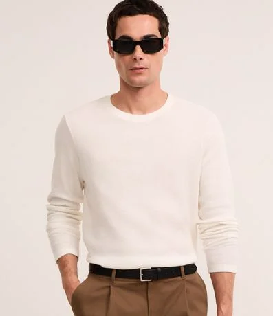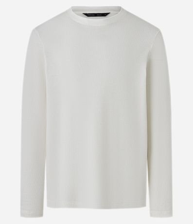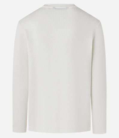 Ref: Camiseta masculina confeccionada em waffle mais sustentável com boas práticas ambientais, no modelo regular. Possui gola redonda, manga longa, sem estampa e texturizada.