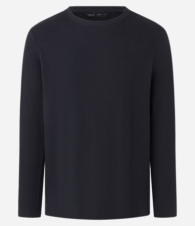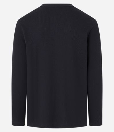 Ref: Camiseta masculina confeccionada em waffle mais sustentável com boas práticas ambientais, no modelo regular. Possui gola redonda, manga longa, sem estampa e texturizada.