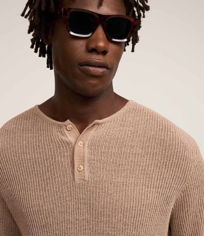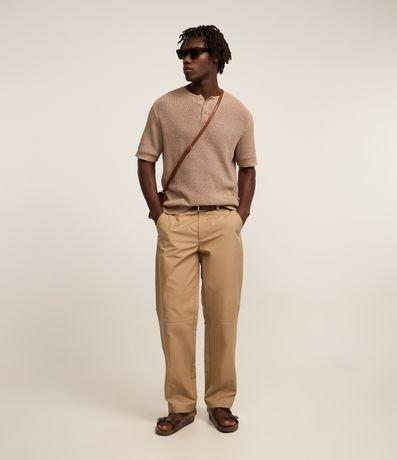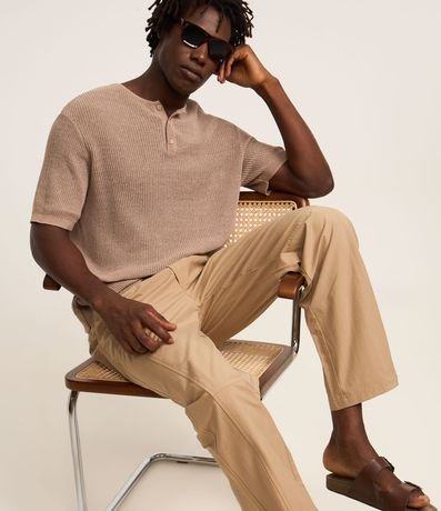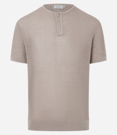 Ref: Camiseta masculina confeccionada em algodão mais sustentável, no modelo regular com gola padre, abotoamento, manga curta e textura com efeito crochê.