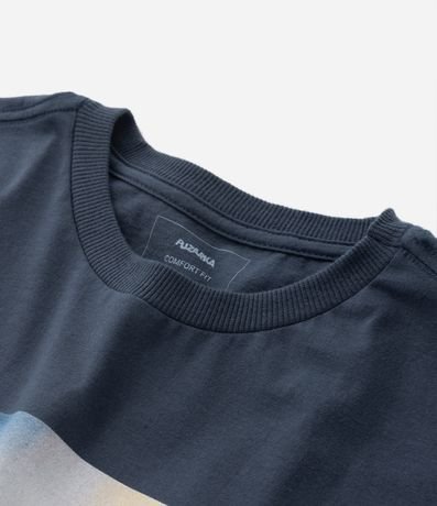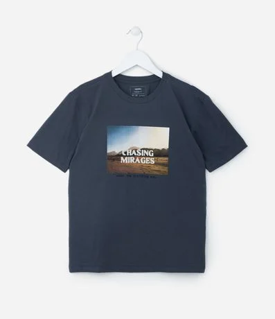 Ref: Camiseta infantil de modelo regular, com gola redonda, manga curta e estampa paisagem com lettering "Chasing mirages".