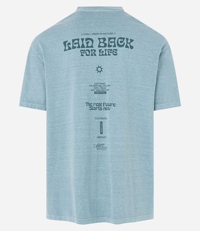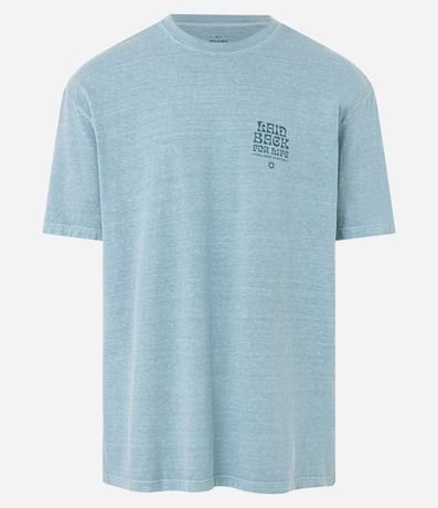 Camiseta masculina, confeccionada em algodão mais sustentável, no modelo relaxed, gola redonda e manga curta. Peça com estampa lettering frente e costas.