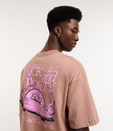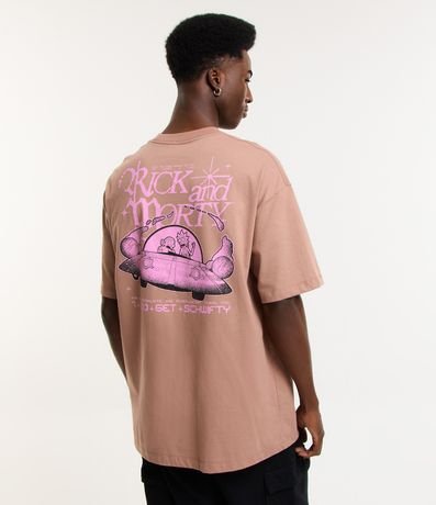 Camiseta modelo relaxada, gola redonda, manga curta. A peça possuí estampa frontal e traseira da animação Rick e Morty.