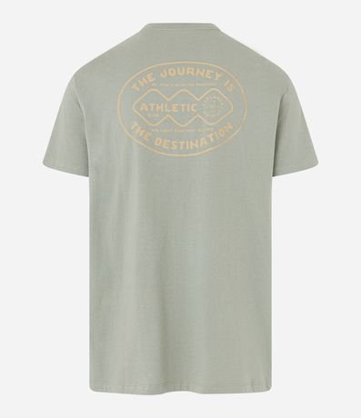 Camiseta masculina, modelo relaxed, gola redonda, manga curta. A peça contém estampa no peitoral e nas costas com a frase The journey is the destination.
