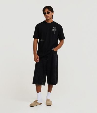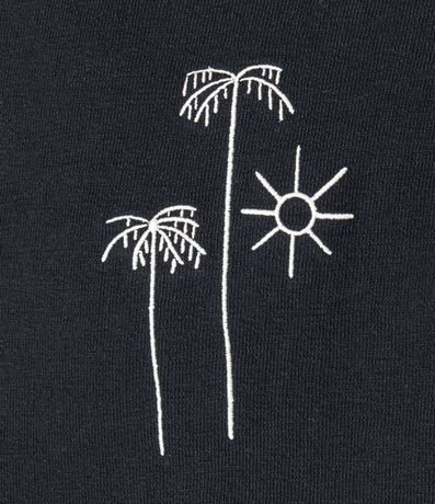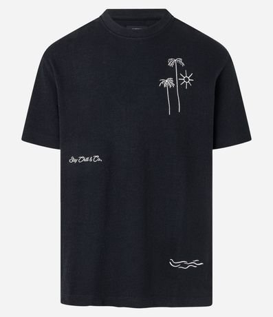 Ref: Camiseta masculina modelo relaxed com gola redonda, manga curta, estampa bordada de ícones como coqueiro, sol e confeccionada em material mais sustentável.