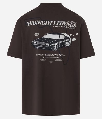 Ref: Camiseta masculina confeccionada em algodão mais sustentável através de boas práticas ambientais, no modelo relaxed. Possui gola redonda, manga curta, estampa de carro e estampa lettering "Mindnight legends".