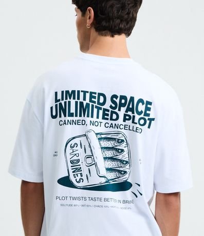 Ref: Camiseta masculina em meia malha, modelagem relaxed e estampa divertida de sardinha na parte frontal. Possui gola redonda e mangas curtas, garantindo conforto para o dia a dia. Peça versátil para compor looks casuais, confeccionado em algodão de certificado BCI.