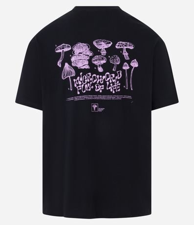 Ref: Camiseta masculina confeccionada em algodão mais sustentável, modelo relaxed, gola redonda, manga curta e estampa lettering.