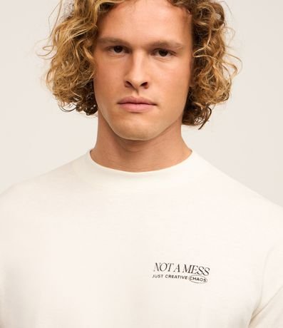 Ref: Camiseta masculina confeccionada em algodão mais sustentável com boas práticas ambientais. Peça no modelo relaxed com gola redonda, manga curta e estampa lettering.