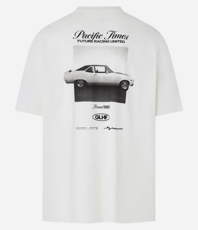 Ref: Camiseta masculina confeccionada em algodão mais sustentável com boas práticas ambientais, peça com gola redonda e manga curta. Modelo relaxed com estampa photoprint de carro com lettering Pacific Times.
