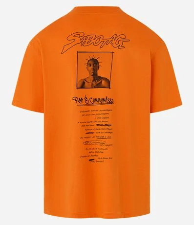 Ref: Camiseta masculina, confeccionada em algodão mais sustentável, gola redonda, manga curta. Peça no modelo relaxed com estampa em homenagem ao rapper Sabotage.