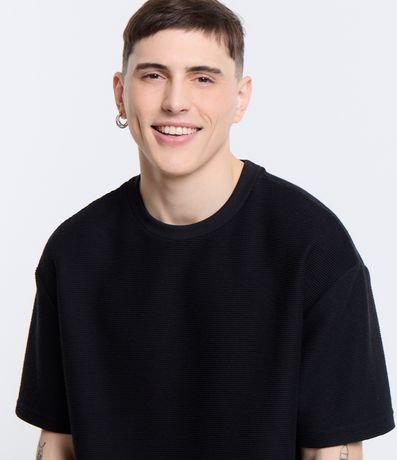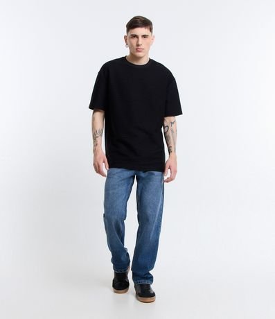 Ref: Camiseta relaxed, manga curta, confeccionada em algodão, sem estampa e com leve textura.