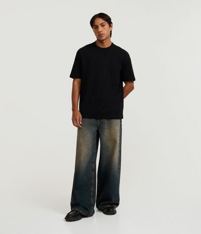 Ref: Camiseta masculina confeccionada em algodão mais sustentável, gola redonda, manga curta. Peça no modelo relaxed com textura mini waffle.