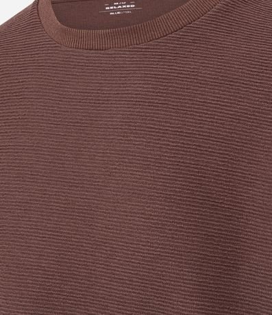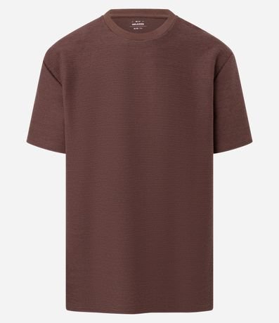 Camiseta masculina confeccionada em algodão certificado BCI e boas práticas ambientais. Modelo relaxed com gola redonda, mangas curtas e textura. Tecido leve em algodão e poliéster para conforto e estilo.