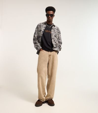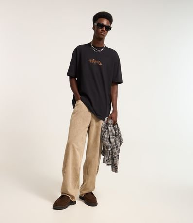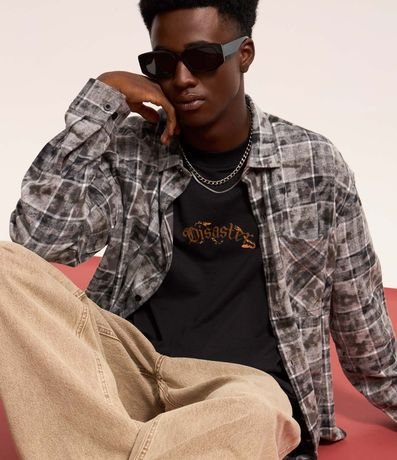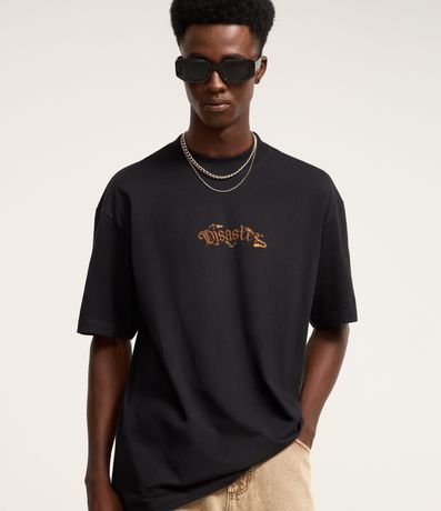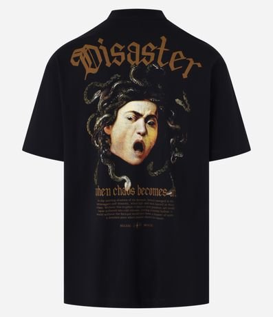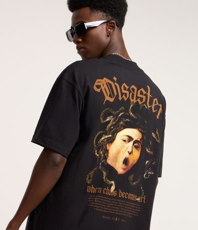 Ref: Camiseta masculina confeccionada em algodão mais sustentável, gola redonda e manga curta. Peça no modelo relaxad com estampa disaster.
