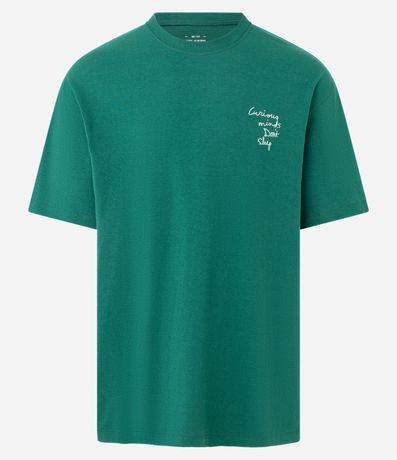 Ref: Camiseta confeccionada em malhão de algodão BCI. A blusa modelo relaxed tem gola redonda, mangas curtas, estampa frontal pequena e estampa traseira lettering grande.