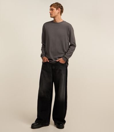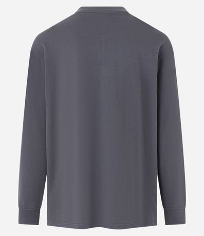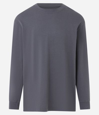 Ref: Camiseta masculina, no modelo relaxed, confeccionada em malhão, sendo uma malha mais grossinha, com gola redonda, manga comprida. Peça contém detalhe de estampa mini print centralizada.