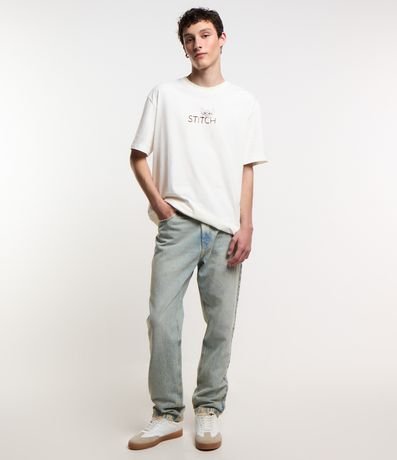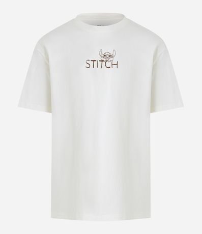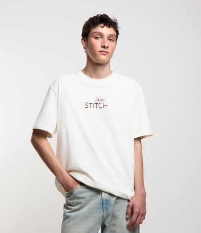 Camiseta masculina, modelo relaxed, confeccionada em malhão, com gola redonda, manga curta. Peça contém estampa divertida do personagem Stitch.