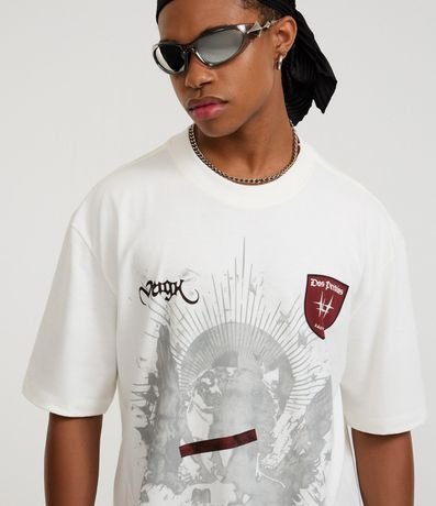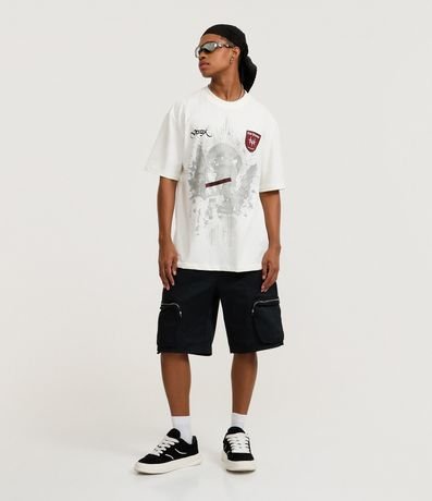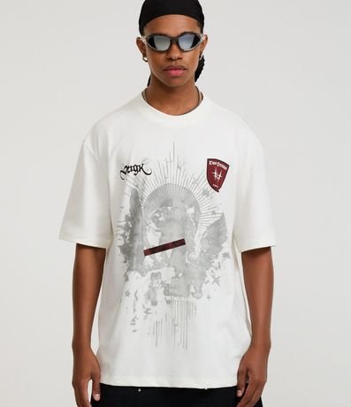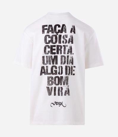 Ref: Camiseta masculina confeccionada em algodão certificado BCI e boas práticas ambientais, garantindo conforto e responsabilidade. Modelo relaxed, gola redonda e estampa localizada frontal e traseira, trazendo estilo urbano e personalidade.
